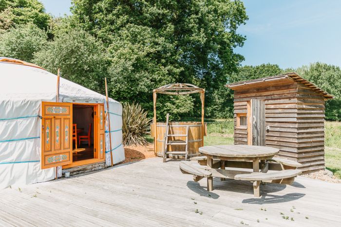 Le plaisir d’une nuit en yourte, associé à une escapade relaxante dans son spa privatif en plein air.